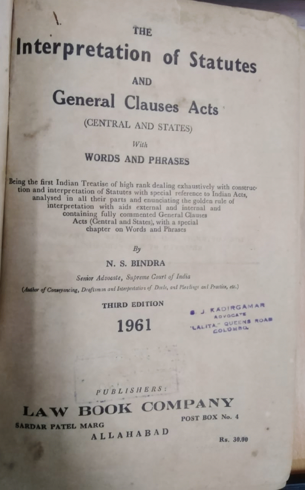 Publication details: London Sweet & Maxwell Limited 1961